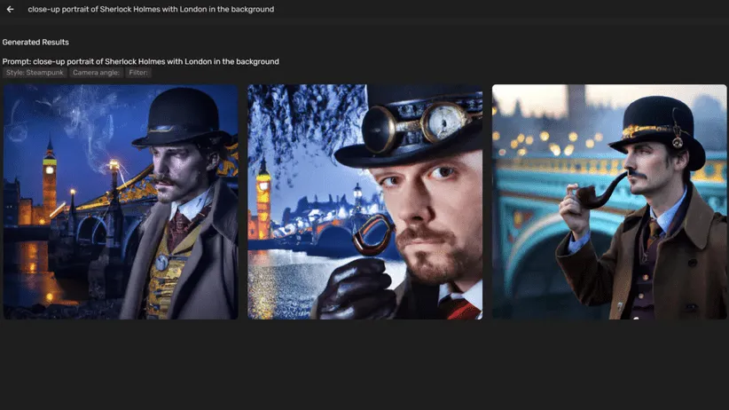 هوش مصنوعی دریم ماشین به صورت پیش فرض چهار تصویر برای شما تولید میکند. این هوش مصنوعی همچنین نکات کلیدی متن پرامپت شما را برجسته میکند تا ببینید که چگونه به آنها در تصاویر پرداخته شده است. بزرگ شده یکی از این تصاویر خروجی را در پایین مشاهده میکنید.