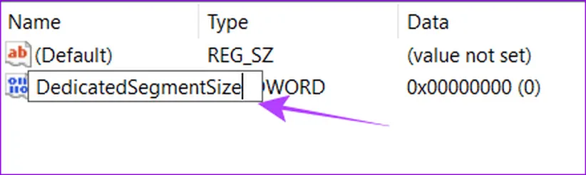قدم هشتم) بخش مورد نظر را تحت عنوان DedicatedSegmentSize نامگذاری کنید.
