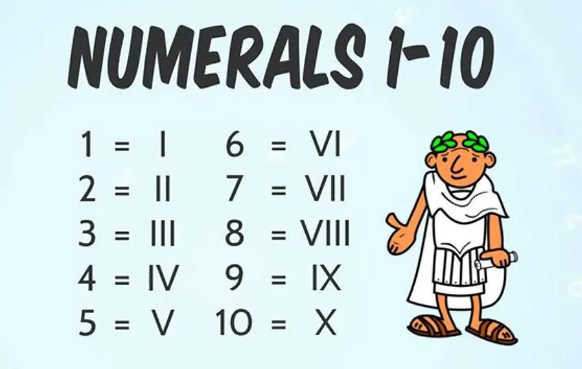 در عدد نویسی رومی، ترتیب عدد نویسی از یک تا 10 به شکل زیر است: