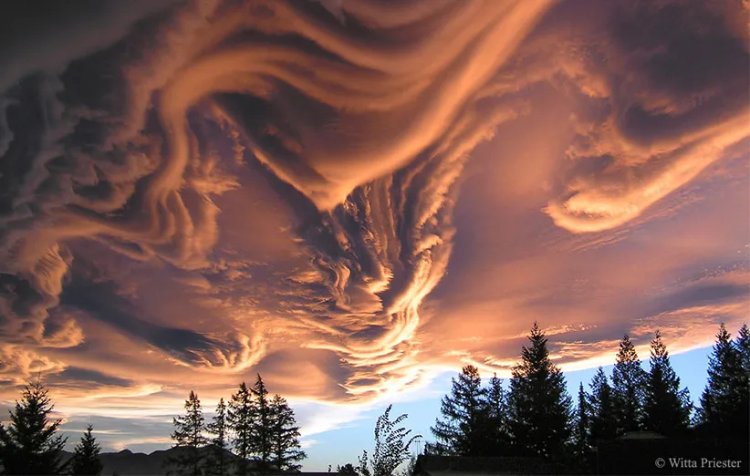 اینها چه نوع ابرهایی هستند؟ هرچند که منشاء آنها مشخص نیست، ولی برخلاف ظاهر ترسناکشان نشانهی وقوع طوفان نیستند. این ابرها با نام غیر رسمی «موجدار شوریده» (Undulatus asperatus) شناخته میشوند و ظاهر خیلی جالبی دارند. از آنجا که خیلی به ندرت رخ میدهند، مطالعهی کمی روی آنها انجام شده است. هرچند که بیشتر ابرهای ارتفاع پایین سطح مقطع صاف دارند، به نظر میرسد که ابرهای شوریده در قسمت پایینشان دارای ساختارهای عمودی هستند. تصور میشود که ابرهای شوریده به نوعی به ابرهای عدسگون یا شاید هم ابرهای ماماتوس مربوط باشند. ابرهای عدسگون نزدیک کوهها تشکیل میشوند و ابرهای ماماتوس با طوفانها در ارتباط هستند. شاید هم این ابرها بر اثر «گرمبادها» تشکیل میشوند. نوعی باد گرم و خشک که از دامنهی کوه به پایین وزیده میشود. این عکس سال ۲۰۰۵ در نیوزیلند گرفته شده و از آنجا که نور خورشید مایل به ابرها میتابد، جزییات زیادی از آن دیده میشود.