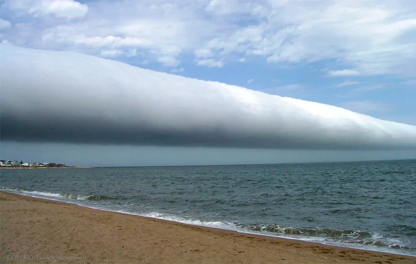 این دیگر چجور ابری است؟ نوعی ابر کمانی که با نام ابر غلتکی شناخته می‌شود. این ابرهای نادر در جبهه‌ی ابرهای پیش رونده تشکیل می‌شوند. جریان رو به پایین هوای طوفانی باعث می‌شود که هوای گرم و مرطوب بالا بیاید، تا پایین‌تر از نقطه‌ی شبنم سرد شود و ابر را تشکیل دهد. وقتی این اتفاق به صورت یکدست در طول جبهه‌ی هوا رخ می‌دهد، ابر غلتکی تشکیل می‌شود. ابرهای غلتکی نشانه‌ی بوجود آمدن طوفان نیستند. عکسی که در بالا می‌بینید سال ۲۰۰۹ بر فراز ساحل «لاس اولاس» در اروگوئه گرفته شده است.