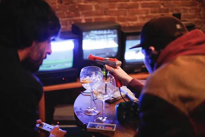 درون تمام اتاقها کنسولها و بازیهای قدیمی گذاشته شده، بدون اینکه هزینهی اضافهای از مشتری گرفته شود. همچنین در لابی کنسولهایی دستی وجود دارد که گیمرها میتوانند با آنها بازی چند نفره انجام دهند. علاوه بر این، در لابی کنسولهای بازی اشتراکی هم وجود دارد. یک کتابخانهی کتابهای مصور کامیکبوک هم دوستداران داستانهای کلاسیک DC و Dark Horse و دیگر خواندنیها را سرگرم میکند.