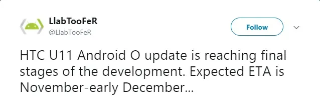 اندروید ۸ بهزودی برای HTC U11 عرضه میشود
