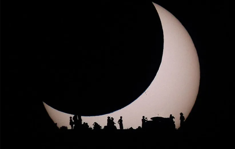 اخیرا به خورشید فکر کرده‌اید؟ در این عکس خورشید به صورت نیمه گرفته در حال طلوع کردن است و در پایین رصدگرانی دیده می‌شوند که به نظاره‌ی این کسوف نشسته‌اند. این عکس سال ۲۰۱۲ از آریزونای آمریکا گرفته شده است. در پایین-سمت راست ماه می‌توان چند لکه‌ی خورشیدی را مشاهده کرد. کسوف زمان خیلی خوبی برای نگریستن به خورشید و فکر کردن درباره‌ی آن است. ولی هفته‌ی دیگر اتفاقی خیلی نادرتر رخ می‌دهد که باز هم می‌توان به خورشید نگریست. یک هفته‌ی دیگر، سیاره‌ی عطارد از جلوی خورشید گذر می‌کند.