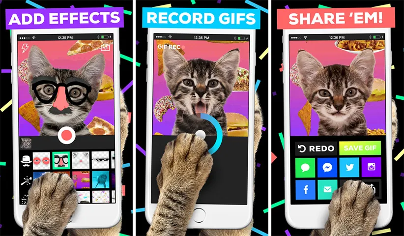 Giphy Cam اپلیکیشن جدیدی است که میتوان آن را شبیه اپلیکیشن Photo Both کامپیوترهای مک برای ساختن تصاویر متحرک GIF دانست. کافی است یک فیلتر و یک پسزمینه انتخاب کرده و سپس دکمهی ضبط را بزنید تا یک فایل GIF از خودتان بسازید. سپس میتوانید این فایل را روی آیفون ذخیره کنید یا آن را مستقیما روی شبکههای اجتماعی منتشر کنید تا دوستانتان هم در بازی شما شریک باشند.