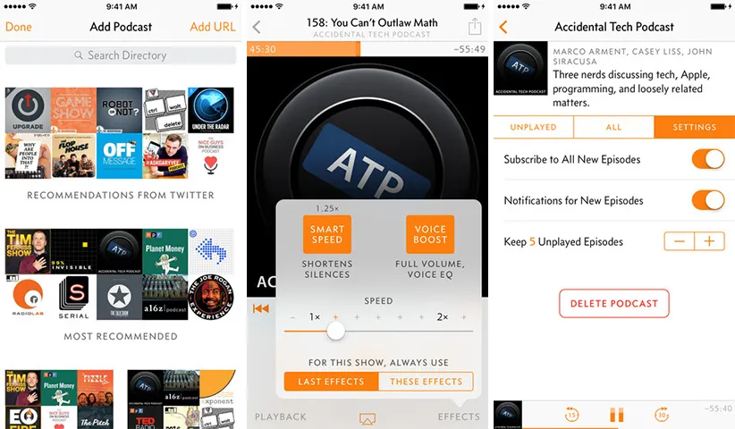 Overcast بهترین اپلیکیشن آیفون برای گوش دادن به پادکستهاست و به لطف بهروزرسانی جدید میتوانید آن را رایگان دانلود کنید. مهمترین قابلیت این اپلیکیشن Smart Speed نام دارد که به شکلی هوشمند تمام وقفههای موجود در پادکست را (یعنی زمانهایی را که برای مدتی سکوت برقرار است) حذف میکند تا بتوانید در زمان کمتری آن را بهطور کامل گوش دهید.