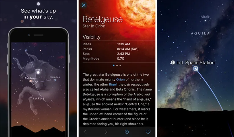 استفاده از اپلیکیشن Sky Guide ساده است. کافی است آیفون یا آیپد خود را بهسوی آسمان نشانه بروید تا این اپلیکیشن محل صورتهای فلکی، ستارهها و سیارههای مختلف بالای سرتان را برای شما مشخص کند و جزئیاتی را در مورد هرکدام نمایش دهد. اگر هم قصد دارید چیزها را خودتان بیابید میتوانید از قطبنمای داخلی این اپلیکیشن کمک بگیرید.