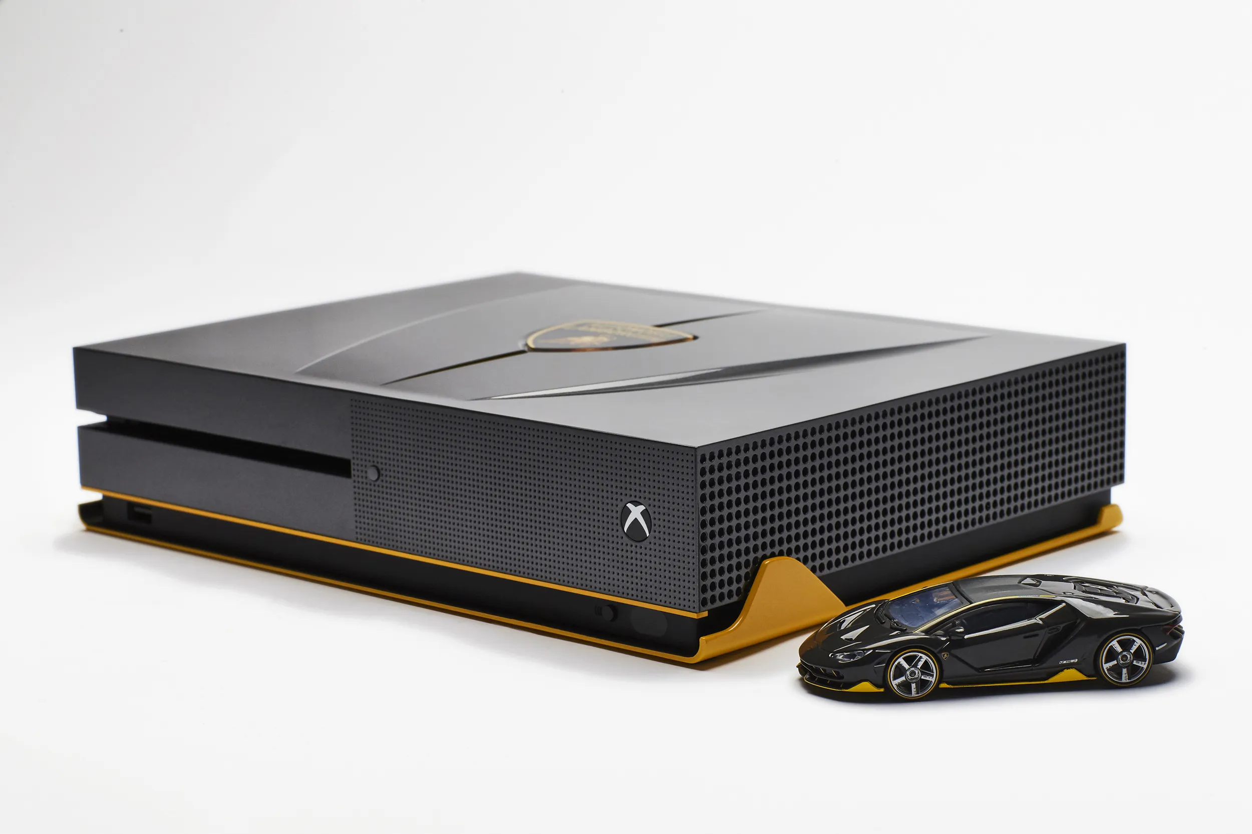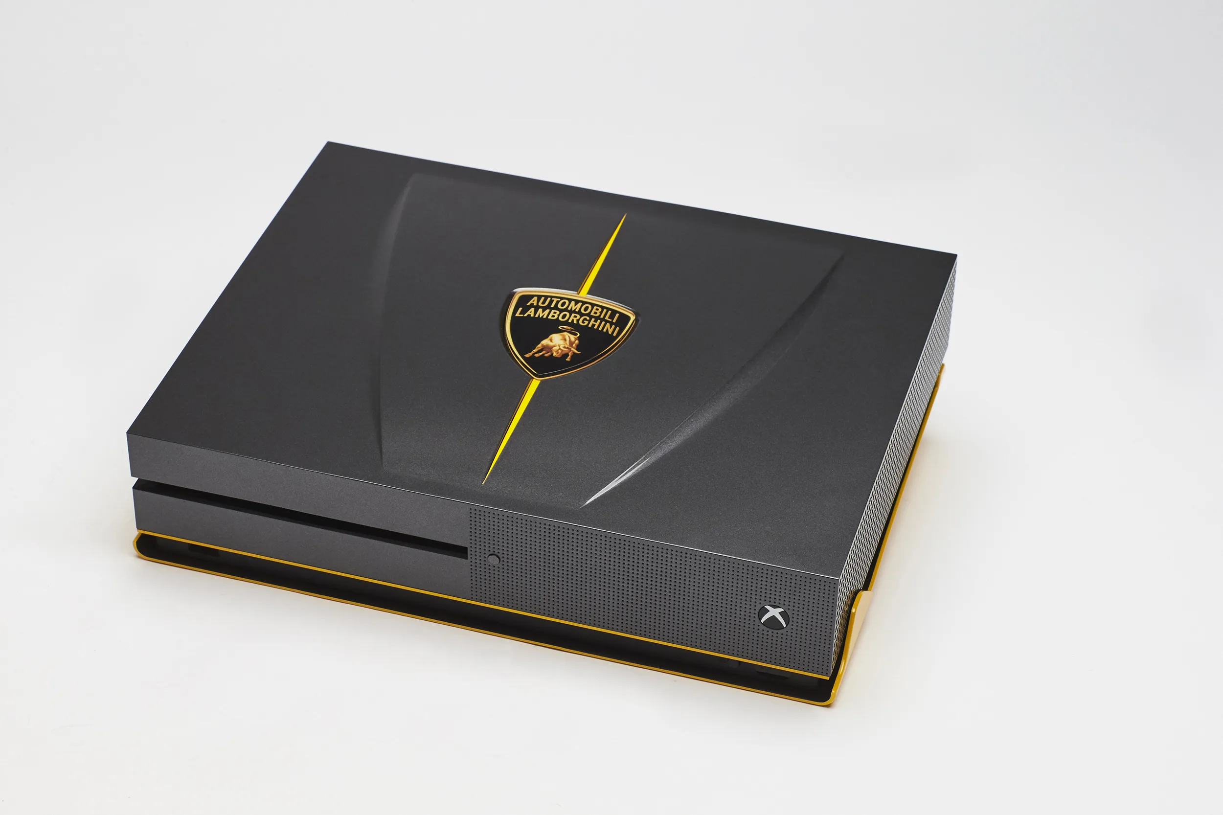مایکروسافت درباره این کنسول گفته:” ما با الگوبرداری از اتومبیل 2 میلیون دلاری Lamborghini Centenario یک ایکسباکس وان اسلیم ساختیم. اتومبیلی که روی جلد بازی Forza Horizon 3 هم دیده میشود. ظاهر این کنسول و ظاهر دستهی آن با الگوبرداری از این خودرو ساخته شدهاند و حتی صدای این اتومبیل هم در زمان روشن و خاموش کردن کنسول شنیده میشود.”