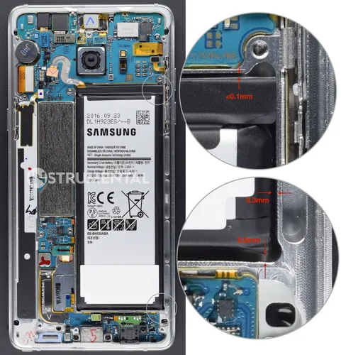 براساس گزارشهای جدید به نظر میرسد که طراحی بلند پروازانهی باتری گلکسی نوت 7 دلیل اصلی انفجار این محصول بوده است. در واقع سامسونگ از یک لایه پلیمری آغشته به الکترولیت برای ایجاد فاصله بین یک لایه مثبت ساخته شده از لیتیوم کبالت اکسید و یک لایهی منفی گرافیتی استفاده کرده بود. اگر این دو لایه به یکدیگر برخورد کنند، الکترولیتها گرم میشوند و انفجار به وجود میآورند.