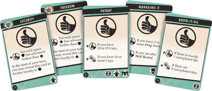 بازیکنندهها با رسیدن به هدفهایی که در کارت اصلی روی دستشان مشخص شده، میتوانند بازی را برنده شوند.
