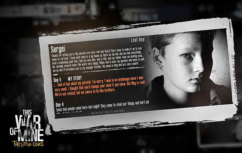 بازیکنندهها در این عنوان در نقش افرادی قرار میگرفتند که در محیطی جنگزده حضور داشتند و برای زنده ماندن تلاش میکردند. برای زنده نگهداشتن شخصیتهای بازی باید کارهای زیادی انجام میدادید که روند بازی را بسیار چالش برانگیز کرده بودند. مدتی پیش شرکت Deep Silver که ناشر این عنوان به حساب میآید، اعلام کرد که نسخهی جدیدی از این بازی به نام This War of Mine: The Little Ones برای کنسولهای پلیاستیشن 4 و ایکسباکس وان در دست ساخت قرار دارد. این عنوان قرار است در تاریخ 9 بهمن ماه عرضه شود.
