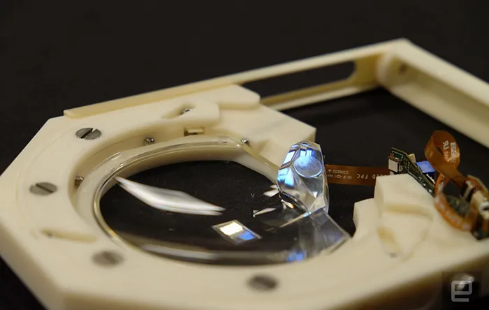 لنزی که روی شیشههای عینک قرار گرفته و اطلاعات گوناگون را به نمایش در میآورد بسیار نازک طراحی شده و با نگاه اول مشخص نمیشود که چیزی روی شیشههای عینک قرار گرفته است. این لنز در سمت داخلی شیشهی عینک قرار گرفته و به همین دلیل از بیرون مشخص نمیشود. شرکت Carl Zeiss توانسته کاری کند تا تصاویر در اندازهی بسیار کوچک روی لنز خمیدهای که روی شیشهی عینک قرار گرفته به نمایش در بیایند.