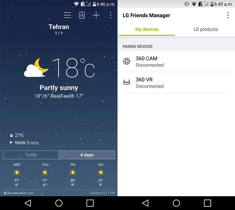 همانطور که انتظار میرفت، G5 بهطور پیشفرض با اندروید ۶.۰.۱ مارشمالو عرضه شده و LG از یک رابط کاربری جدید برای این گوشی استفاده کرده است. بارزترین مورد در رابط کاربری جدید مربوط به حذف بخش App Drawer برای نشان دادن لیست کامل برنامهها است. اکنون با یک رابط کاربری یک لایه مواجه هستیم که شباهت زیادی به رابط کاربری iOS در گوشیهای آیفون دارد. تمامی برنامهها در صفحات اصلی پخش شدهاند و تنها راه اینکه از شلوغی آیکونها خلاص شوید، پوشهبندی کردنشان است. همانطور هم که از یک گوشی در این سطح انتظار دارید، حتی باوجود استفاده از تصویر پسزمینهی متحرک (Live Wallpaper) کوچکترین مکث یا کاهش سرعتی هنگام اجرای برنامهها یا حرکت بین منوها مشاهده نخواهید کرد. البته تنها مدت کوتاهی با G5 کار کردیم و احتمالا این موضوع، هنگامیکه حافظهی دستگاه را با انواع و اقسام بازیهای سنگین و برنامههای مختلف پرکنید، تغییر خواهد کرد.