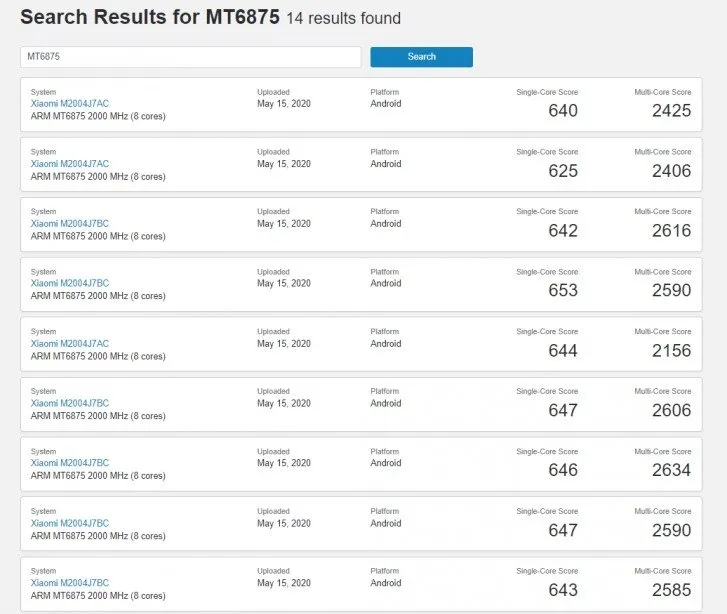 هر دو دستگاه اما به پردازنده مدیاتک MT6875 مجهز شدهاند که بنچمارک از آن به عنوان پردازنده معرفی نشده یاد میکند که به احتمال زیاد همان Dimensity 820 خواهد بود که پیشتر هم در رابطه با آن خبرهای زیادی شنیده بودیم. شما عزیزان میتوانید نتیجه این بنچمارک را در زیر ببینید.