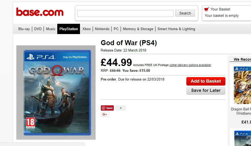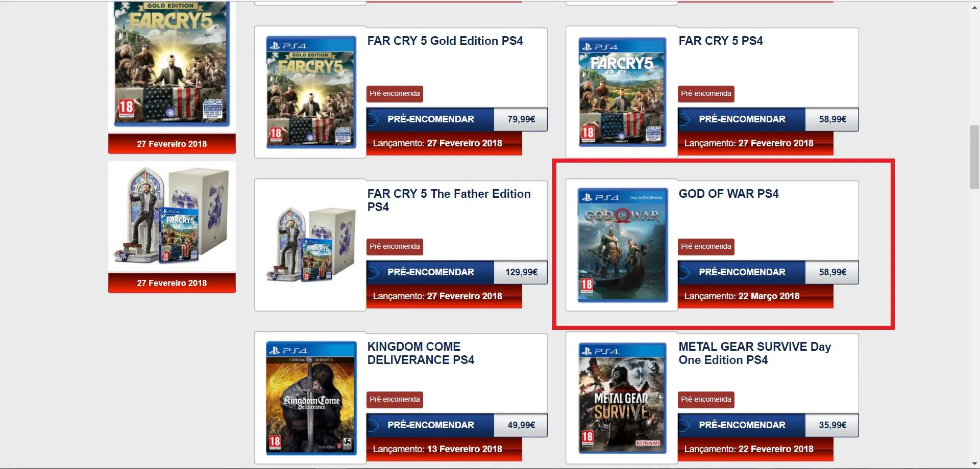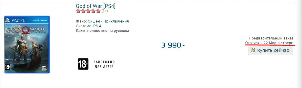 از دیروز، چند فروشگاه اینترنتی زمان عرضهی God of War را در وبسایت خود به ۲۲ مارس ۲۰۱۸ تغییر دادند. میتوانید تصاویر این فروشگاهها را در ادامه ببینید.
