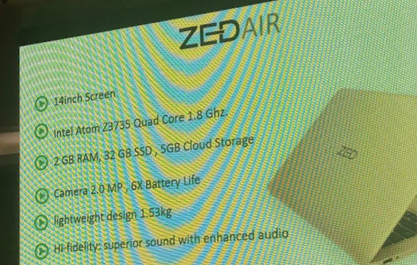 از جمله محصولات جدید این شرکت میتوانیم به لپتاپ Zed Air اشاره کنیم. محصولی که یک صفحه نمایش 14 اینچی، 2 گیگابایت رم، 32 گیگابایت حافظهی داخلی و یک پردازندهی 1.8 گیگاهرتزی چهار هستهای دارد. این محصول به ویندوز 10 مجهز شده است.