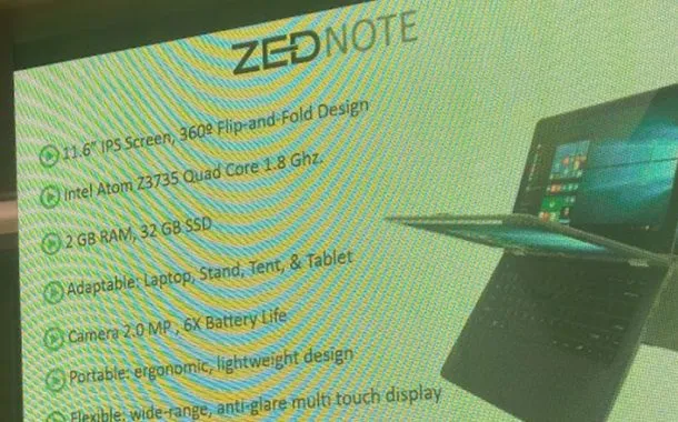 محصول بعدی این شرکت Zed Air Mini نام دارد. لپتاپی که با یک صفحه نمایش 10.6 اینچی، دو گیگابایت رم، 32 گیگابایت حافظهی داخلی و یک پردازندهی چهار هستهای راهی بازار میشود.