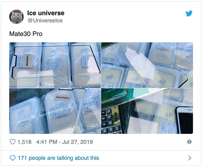 این روزها خبرهای زیادی درباره هواوی و محصولات این شرکت شنیده میشود و در ماه اکتبر باید منتظر گوشیهای میت 30 و میت 30 پرو باشیم. حالا تصویری از یک محافظ نمایشگر منتشر شده که ادعا میشود مربوط به گوشی هواوی میت 30 پرو است. این محافظ نمایشگر، بریدگی صفحه نمایش و همچنین خمیدگی اطراف این نمایشگر را به خوبی نشان میدهد.