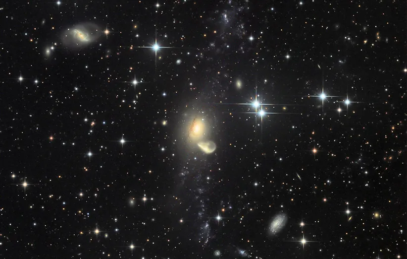 روزگاری در فاصلهی ۲۰۰ میلیون سالی نوری از ما، دو کهکشان به یکدیگر برخورد کردند. بر اثر این برخورد، مواد کهکشان NGC 5291 در فضای میان کهکشانی پخش شد. این پدیده در دل خوشهی کهکشانی Abell 3574 و صورت فلکی قنطورس رخ داد. در مرکز این عکس میتوانید کهکشان NGC 5291 و کهکشانی کوچک به نام «صدف دریایی» را ببینید. از این کهکشان رو به سوی پایین، یک دم کشندی با طول ۱۰۰ هزار سال نوری دیده میشود که در آن تودههایی به شکل کهکشانهای کوتوله قرار دارد. کهکشانهای کوتولهای که عمدتا از ستارههای جوانتر تشکیل شدهاند. به نظر میرسد این کهکشانهای کوتولهی پر از عناصر سنگینتر از هلیوم و هیدروژن، به نوعی درحال بازیابی مواد از دست رفتهی NGC 5291 که در اثر برخورد در فضا پخش شدهاند، هستند.