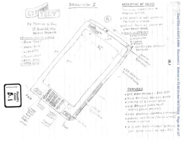 راس همچنین میگوید به جز آیفون، اپل از ایدهی ۲۴ سال پیش او برای ساخت آیپد و آیپاد استفاده کرده است. بنا به ادعای راس، پتنت این سه محصول خیلی پیشتر از آن که توسط شرکت اپل ساخته شوند، در سال ۱۹۹5 توسط او به ادارهی ثبت اختراع و نشان تجاری ایالات متحده آمریکا (USPTO) تحویل داده شده بود. ظاهرا او که این پتنتها را در مجموعهای تحتعنوان «دستگاههای الکترونیکی خواندن» به USPTO برده بود، بهخاطر عدم توانایی در پرداخت هزینههای ثبت در آن زمان نتوانسته آنها را به نام خود به ثبت برساند.