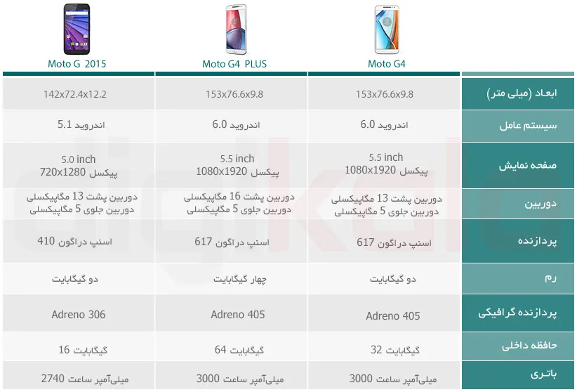 جدول مقایسهی Moto G4 و Moto G4 Plus با Moto G 2015