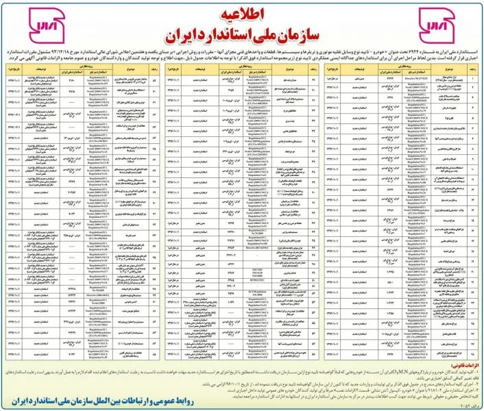 فهرست کامل ۸۵ استاندارد خودرویی که قرار است از ابتدای دیماه سال ۱۳۹۷ و در سه مقطع زمانی در دستور کار قرار گیرد اعلام شد.
