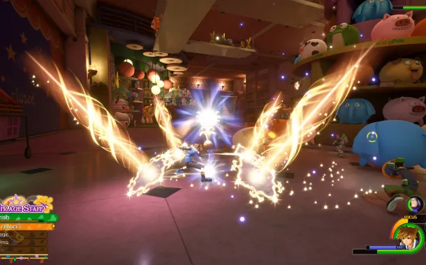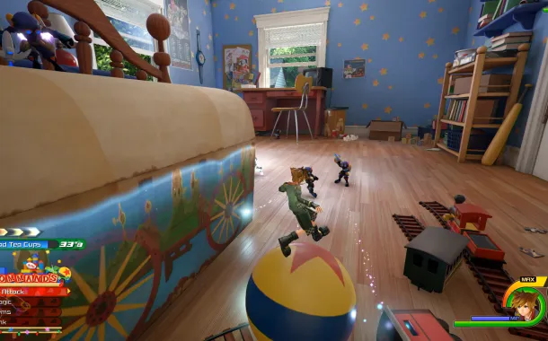 دنیای فیلم «داستان اسباب بازی» در Kingdom Hearts III نه تنها شامل اتاق و خانهی «اندی» است، بلکه حتی یک فروشگاه اسباب بازی فروشی بسیار بزرگ دارد؛ یک فروشگاه که پر است از اسباب بازیهای دیزنی و فاینال فانتزی.