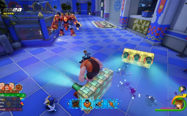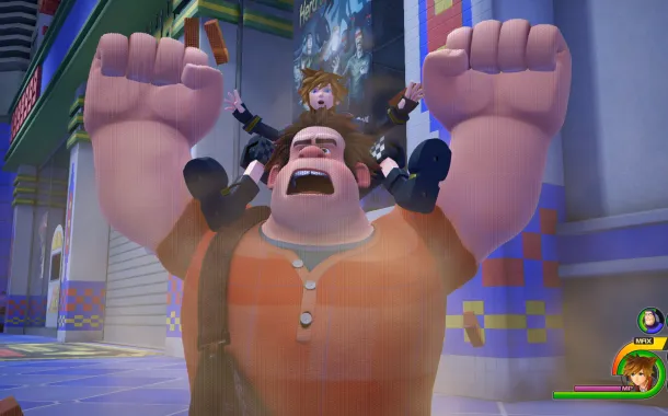 امکان احضار شخصیتهای مختلف دیزنی به عنوان کمک در مبارزات، یکی از قابلیتهای اصلی مجموعه بازیهای Kingdom Hearts است و میتوانیم در تریلر و تصاویر جدید، شخصیت «رالف خرابکار» را هم به عنوان یکی از این احضارها (Summons) ببینیم. رالف میتواند روی زمین بلوکهایی قرار دهد و آنها را خراب کند تا با انفجار، به دشمنان صدمه بزند.