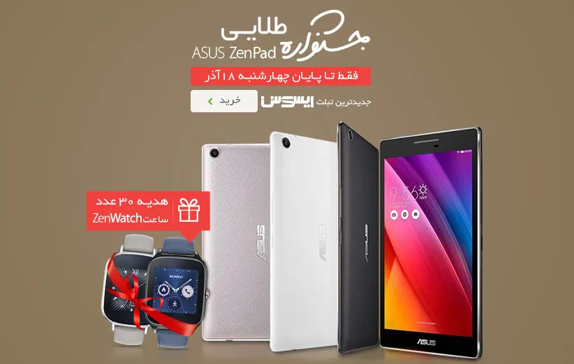 با خرید از جشنواره طلایی ASUS ZenPad، در قرعهکشی ۳۰ دستگاه ASUS ZenWatch2 شرکت کنید.