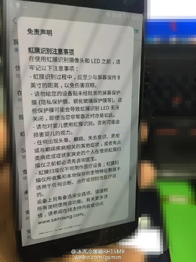 حسگر عنبیهی چشم گلکسی نوت ۷ محدودیتهای زیادی دارد