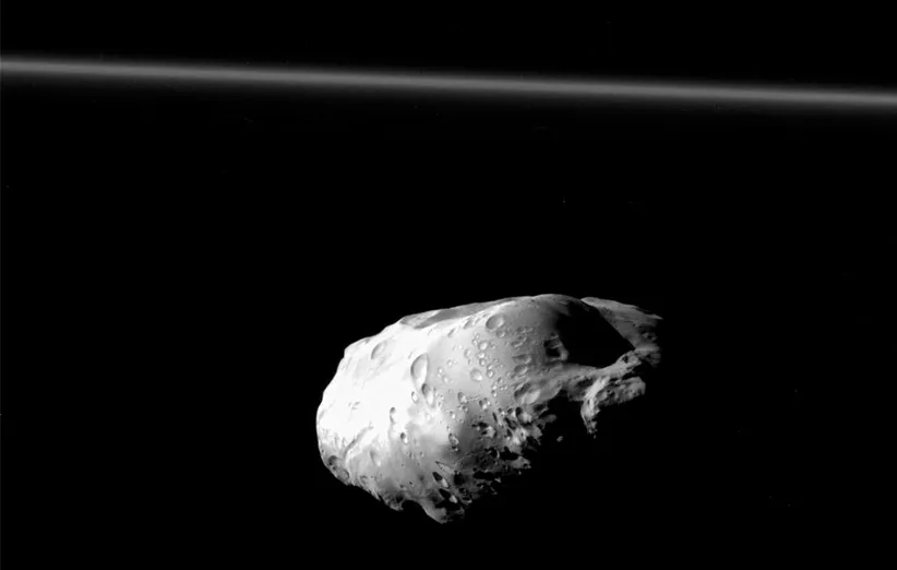 تصویر نجومی روز ناسا (۱۸ دی ۹۴): حلقهی زحل و قمر پرومتئوس