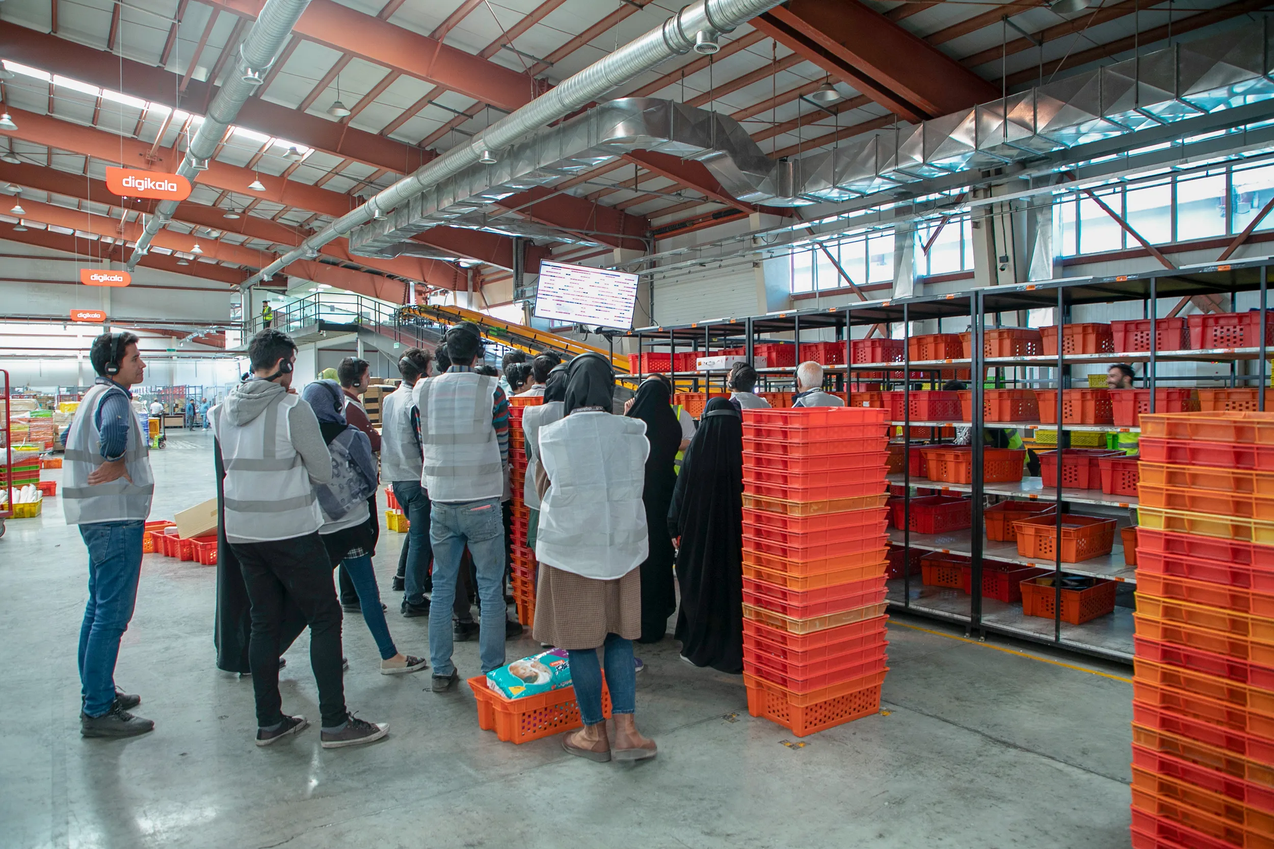 پس از آشنایی کلی دانشجویان برترین دانشگاه صنعتی کشور با کسب و کار دیجیکالا، تور بازدید از مرکز پردازش دیجیکالا در سایت دانش آغاز شد. این دانشجویان در بازدید خود با نحوه طبقهبندی کالاها در قفسههای انبار، نحوه مدیریت موجودی انبار، فرآیند پردازش سبد سفارش، بستهبندی و دستهبندی بستهها برای ارسال به مشتریان آشنا شدند.