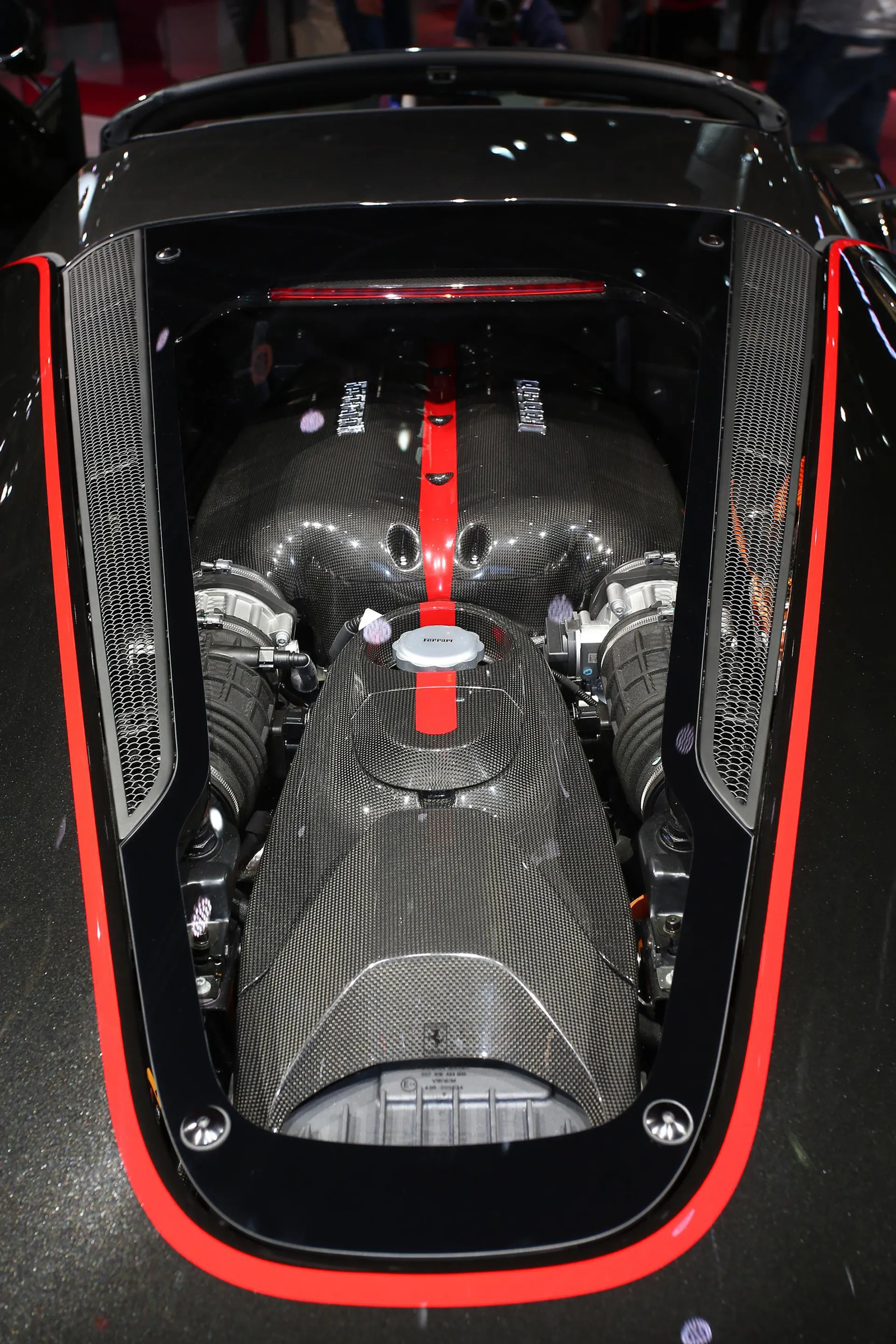 این خودرو یک پیشرانهی 12 سیلندر خورجینی در قلب خود دارد که میتواند توانی معادل 950 اسببخار تولید کند. همچنین این نمونه نسبت به دیگر مدلهای لافراری، به سقف هاردتاپ مجهز نشده، بلکه برای باز و بسته کردن پنل آن باید سقف فیبرکربن آن را دستی نصب کرد یا برداشت.