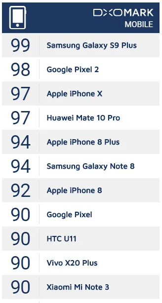 ردهبندی دوربین گوشیها در سایت Dxo Mark