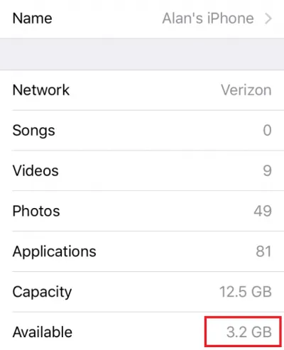 برای این‌که بدانید چه حجمی از حافظه‌ی گوشی‌تان قابل‌استفاده است، باید به بخش تنظیمات بروید. حالا گزینه‌ی General و بعد About را انتخاب کنید. در قسمت پایین صفحه در بخش Available میزان حافظه‌ی در دسترس را مشاهده خواهید کرد.
