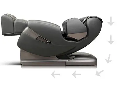 طبیعتا صندلی‌های ماساژ به دلیل قرار گرفتن در وضعیت‌های مختلف از جمله خوابیده ابعاد ثابتی ندارند. در نتیجه توجه به حداکثر ابعاد مورد نیاز صندلی ماساژ هنگام خرید از اهمیت بالایی برخوردار است. اگر پایه‌ی صندلی ماساژ ثابت باشد مجبور خواهید بود علاوه بر جلو، در پشت صندلی هم فضایی اضافه را برای زمانی که صندلی به حالت خوابیده درمی‌آید در نظر بگیرید. در این حالت امکان قرار دادن صندلی در فاصله‌ی کمی نسبت به دیوار ممکن نخواهد بود و اگر فضای مستقلی برای صندلی ماساژ نداشته باشید ممکن است از وضعیت آن نسبت به دکوراسیون منزل راضی نباشید. خوشبختانه برخی از صندلی‌های ماساژ این مشکل را با قرار دادن ریلی در بخش پایه حل کرده‌اند. در این صندلی‌ها پایه هم‌زمان با تغییر وضعیت صندلی به حالت خوابیده روی ریل به سمت جلو حرکت می‌کند. در نتیجه دیگر به فضای اضافه در پشت صندلی ماساژ نیازی نخواهد بود و می‌توانید آن را متناسب با دکوراسیون در هر فاصله‌ی نزدیکی نسبت به دیوار قرار دهید.