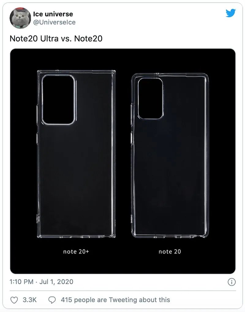 همچنین او امروز یک عکس از قابهای محافظ که برای دو گوشی نوت 20 و نوت 20 اولترا ساخته شده بود را هم توییت کرد که با توجه به آن عکس و رندرهای خبری لو رفته، میتوانیم بگوییم که این عکسها واقعا مربوط به گلکسی نوت 20 اولترا میشوند.