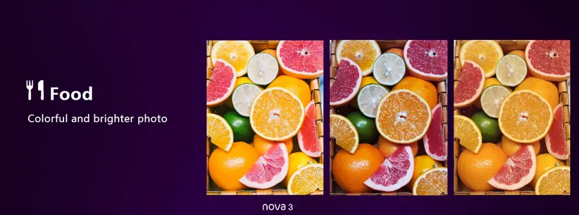 در Huawei nova 3، هوش مصنوعی دوربین موجب ثبت عکسهای زیباتری از غذاها میشود.