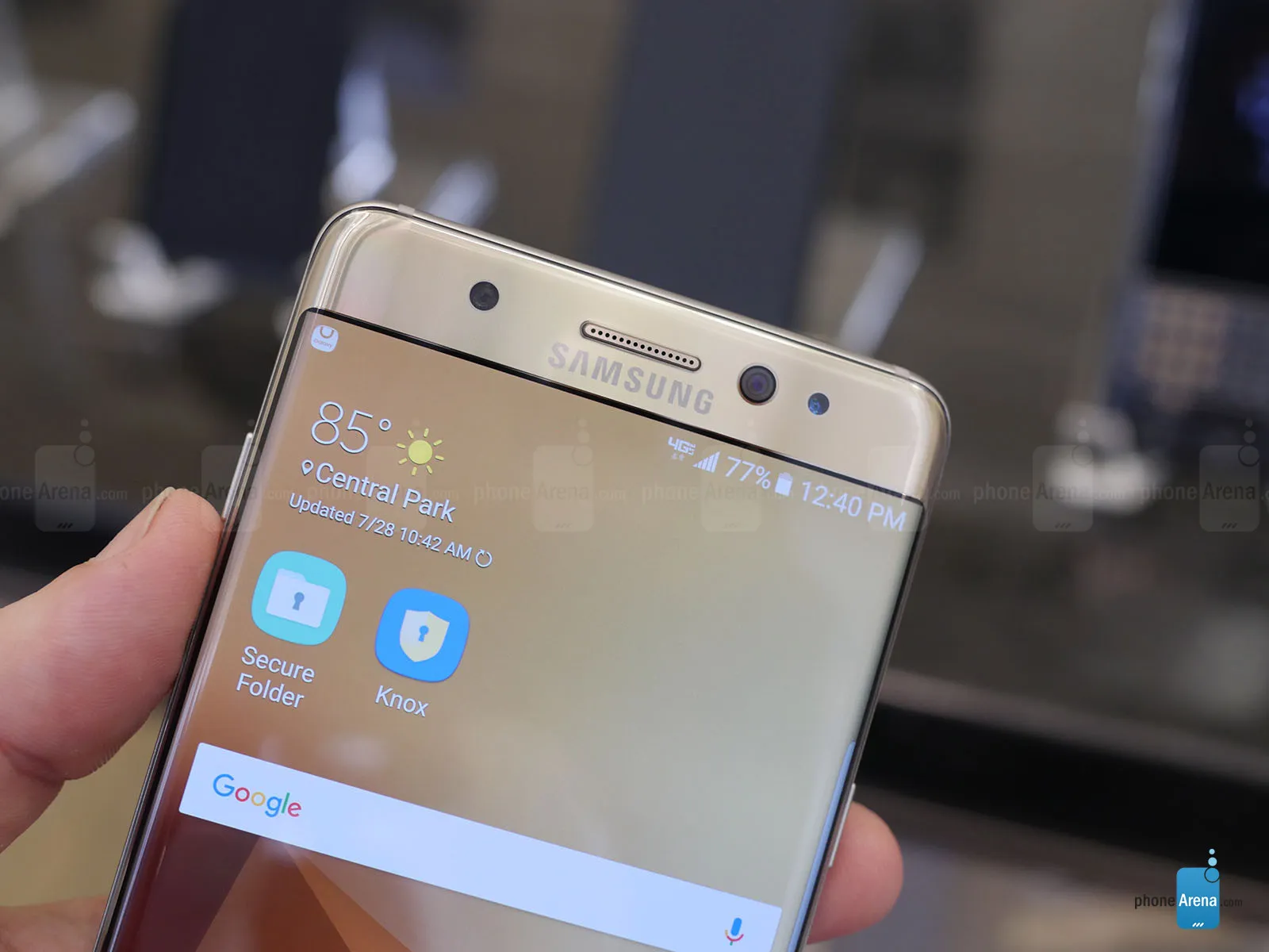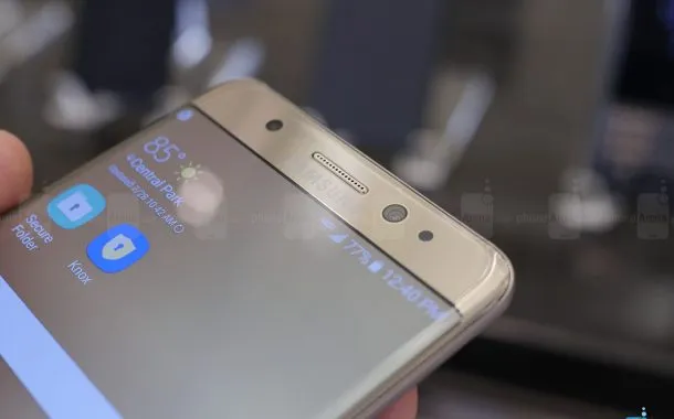 از دیگر تفاوتهای این گوشی در مقایسه با مدلهای قبلی سری نوت میتوان به صفحه نمایش خمیدهی آن اشاره کرد. گلکسی نوت 7 تنها یک مدل با صفحه نمایش خمیده دارد. صفحه نمایش 5.7 اینچی آن همانند گلکسی S7 اج است و از کیفیت 1440p پشتیبانی میکند.