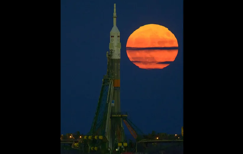 این موشک سایوز، ۱۴ نوامبر در سکوی پرتاب واقع در پایگاه فضایی بایکنور قزاقستان آمادهی پرتاب ایستاده است. به هنگام پرتاب سرعت آن از یک گلوله بیشتر خواهد بود. پشت سر آن، ابرماه در حال طلوع است. ابرماه نامش را به دلیل سرعت و قدرت زیاد بدست نیاورده. ابرماه به ماه کاملی گفته میشود که در نزدیکی حضیض مداریاش قرار دارد و در نتیجه اندکی بزرگتر و روشنتر از ماههای کامل دیگر دیده میشود. ابرماه چند روز پیش، دومین ابرماه از سه ابرماه پشت سر هم سال ۲۰۱۶ بود. همچنین بزرگترین ابرماه از سال ۱۹۴۸ به حساب میآید. قرار است موشک سایوزی که در عکس میبینید امروز فضانوردان ماموریت Expedition 50/51 را به ایستگاه فضایی بینالمللی ببرد.