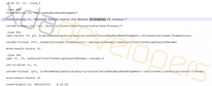 اما هیچگاه تا این حد به سنسور اثر انگشت در زیر نمایشگر گوشیهای سامسونگ نزدیک نبودهایم! امروز یکی از کاربران XDA-Developers توانسته در کدهای سامسونگ پی، رد سنسور اثر انگشت در زیر نمایشگر را بزند. به نظر میرسد هربار که کاربران بخواهند با سامسونگ پی پرداخت داشته باشند، روی نمایشگر دیالوگی ظاهر میشود که میگوید میخواهید از کدام روش برای احراز هویت استفاده کنید؛ PIN یا اسکنر؟ سپس پس از انتخاب اسکنر، این جمله کمی بالاتر میرود و تا محدوده اسکنر اثر انگشت روی نمایشگر خالی شده و کاربر بتواند به سادگی اثر انگشت خود را اسکن کند.