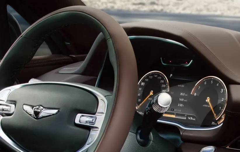 مسلما خریداران جنسیس GV80 هنگام در دست گرفتن فرمان دو شاخه احساس بسیار خوبی پیدا خواهند کرد، زیرا غربیلک آن بسیار خوشفرم بوده و روکشی از جنس چرم دارد. همانطور که از یک اتومبیل مدرن و پیشرفته انتظار میرود، در پشت فرمان GV80 از نمایشگر دیجیتال برای ارایه اطلاعات مختلف استفاده شده است؛ مسیریاب مبتنی بر واقعیت افزوده نقش مکمل این نمایشگر را بر عهده دارد.