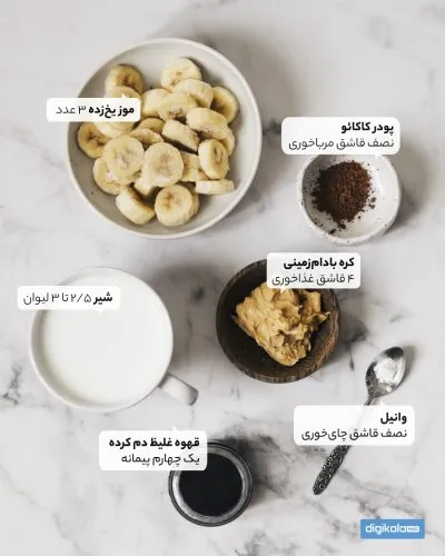 مواد لازم برای تهیه اسموتی قهوه و موز