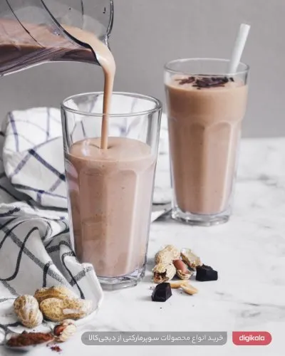 در آخر 2٫5 لیوان شیر را اضافه کنید. نصف لیوان دیگر شیر را در صورتی که اسموتی شما خیلی غلیظ شدن به آن اضافه کنید تا مواد بهتر با یکدیگر مخلوط شوند.