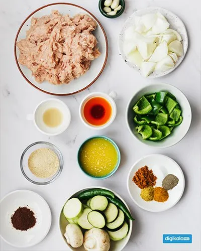- نمک، فلفل سیاه، زردچوبه، ادویهی مرغ، پودر پاپریکا: به میزان لازم