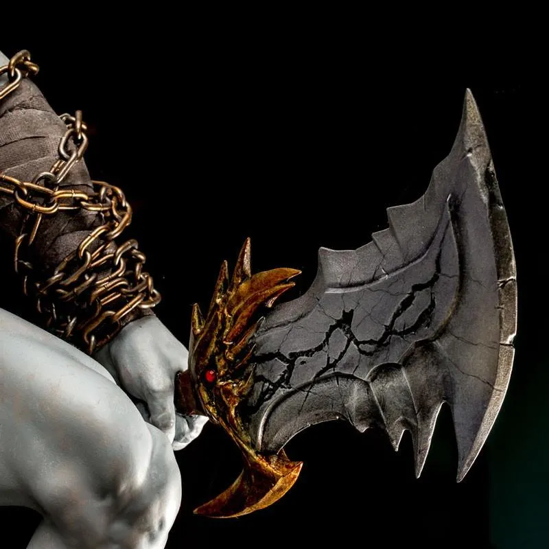 در توضیحات این مجسمه آمده است که توسط تیم طراحان بازی خدای جنگ طراحی شده. این مجسمه ۲۶ اینچ (حدود ۶۶ سانتیمتر) ارتفاع دارد و توسط دست رنگآمیزی شده است. تکههایی از چرم، پارچه و فلز هم برای تزیین آن استفاده شده است.
