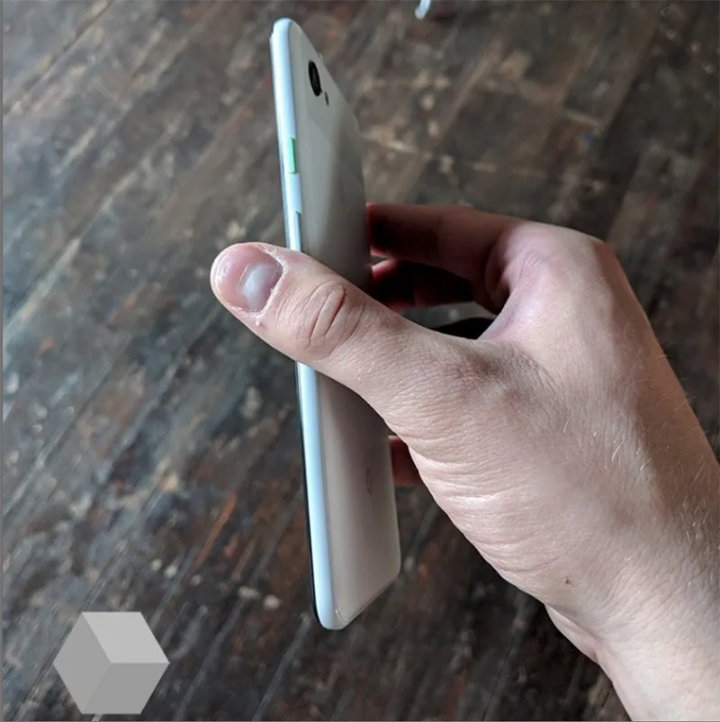 در عکس‌های دیگر، نمای پشتی دستگاه را در رنگ سفید شاهد هستیم و همینطور دکمه پاور دستگاه که رنگ آبی خواهد داشت. در نسل قبلی پیکسل نیز نسخه سفید رنگ، دکمه نارنجی داشت و گویا گوگل به دکمه پاور رنگی علاقه خاصی دارد.