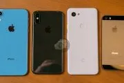 در باقی عکسها، این گوشی را کنار چند آیفون میبینیم که شاید هیجان انگیزترین آنها، مقایسه پیکسل 3 لایت با آیفون XR باشد. اگرچه آیفون XR از نظر قیمتی از پیکسل 3 لایت گرانتر خواهد بود اما احتمالا یکی از اصلیترین رقبای پیکسل 3 لایت به حساب میآید. همچنین میتوانید پیکسل 3 لایت را در مقایسه با آیفون 5S و آیفون XS هم ببینید.