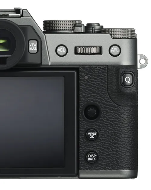 از جلو دوربین X-T30 شباهت بسیار زیادی به نسل قبلی خود یعنی X-T20 دارد اما طراحی بخش پشتی آن تغییرات زیادی کرده است. قبل از هرچیز فوجی ترجیح داده دکمههای D-Pad را حذف کرده و به جای آن یک جوی استیک کوچک در پشت X-T30 بگذارد. دکمه Q نیز جا به جا شده و اکنون دسترسی به آن سادهتر است. نمایشگر پشت دوربین هم حدود 10 درصد باریکتر از X-T20 شده است. درواقع این دوربین به شکل قابل توجهی از X-T3 کوچکتر است اما متاسفانه مقاومت در برابر شرایط هوایی مختلف در این دوربین وجود ندارد.