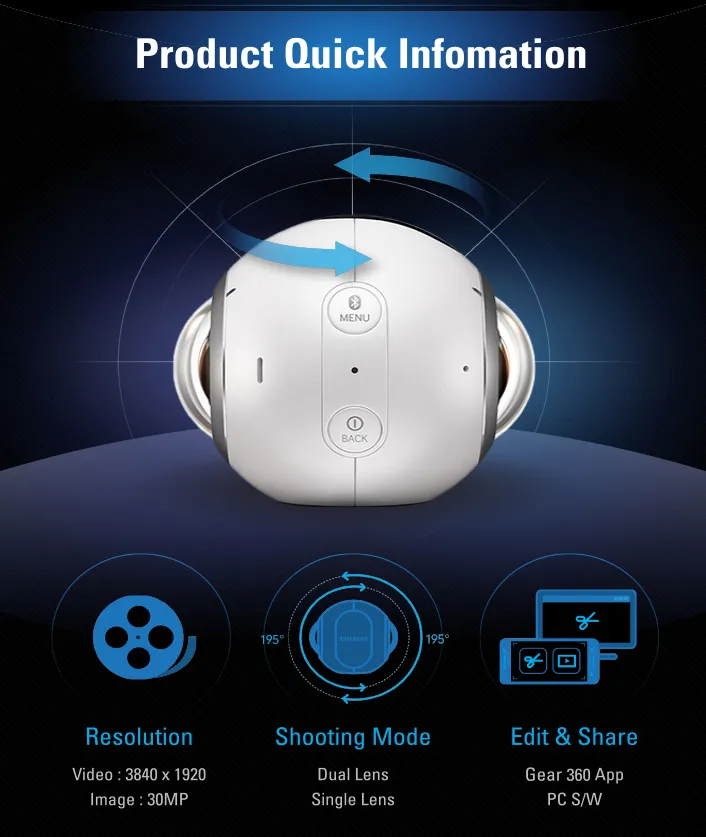 شرکت سامسونگ در زمان معرفی گوشی گلکسی نوت 7 قیمت و تاریخ عرضهی دوربین Gear 360 را اعلام کرد. این دوربین که چند ماه پیش معرفی شده بود با قیمت 349 دلار راهی بازار خواهد شد. این دوربین کرهای شکل از دو دوربین بهره میبرد که هر کدام آنها فیلمهای 180 درجه ضبط میکنند. این فیلمها با قرار گرفتن در کنار هم یک فیلم 360 درجه را تشکیل میدهند.